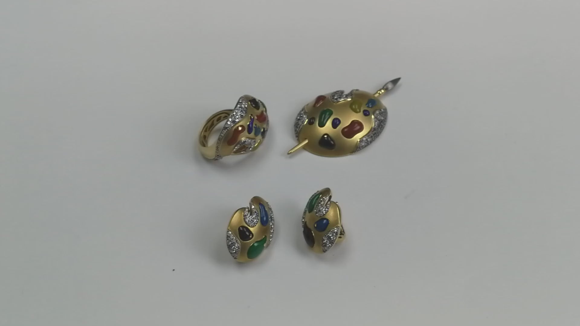 Enamel, Sapphire, Diamonds 18K Yellow Gold Palette Brooch, Brs 0032-0