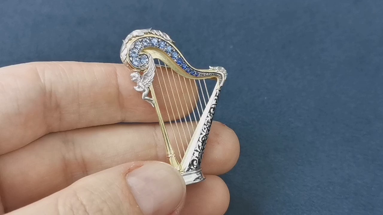 Enamel, Sapphire 18K White and Yellow Gold Harp Brooch, Brs 0267-3 Sale price$8,340.00