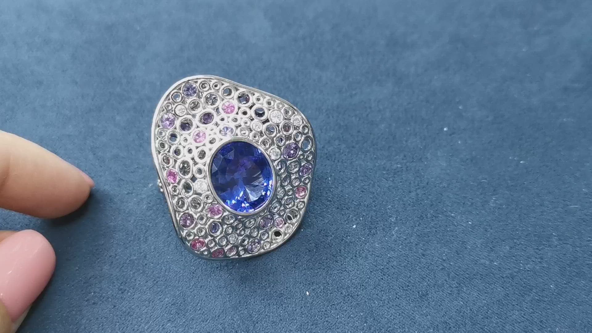 Tanzanite, Diamonds, Purple Pink Sapphires 18K White Gold Ring, R 0023-6