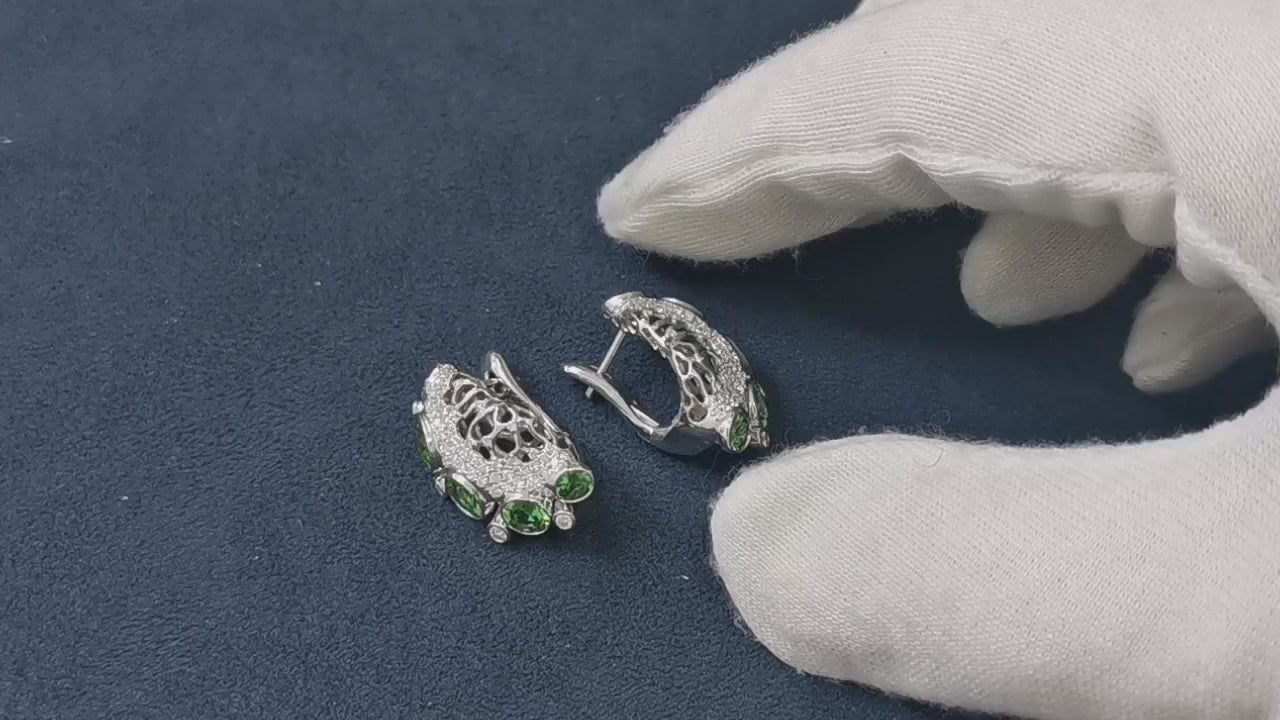 Tsavorite, Diamonds 18K White Gold Earrings, E 0174-2