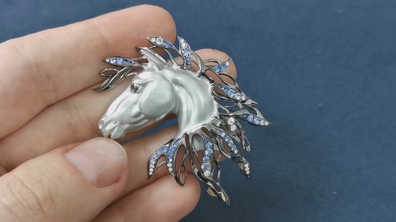 18K White Black Gold, Sapphires, Diamonds Horse Head Brooch
