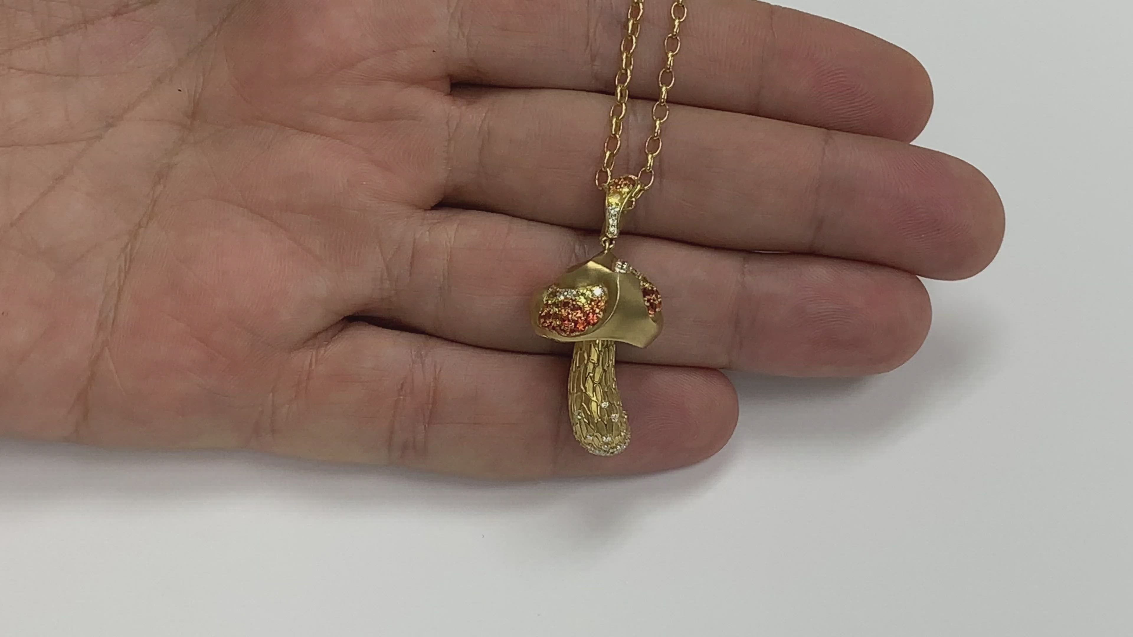 Diamonds Orange Yellow Sapphire 18 Karat Yellow Gold Mushroom Pendant