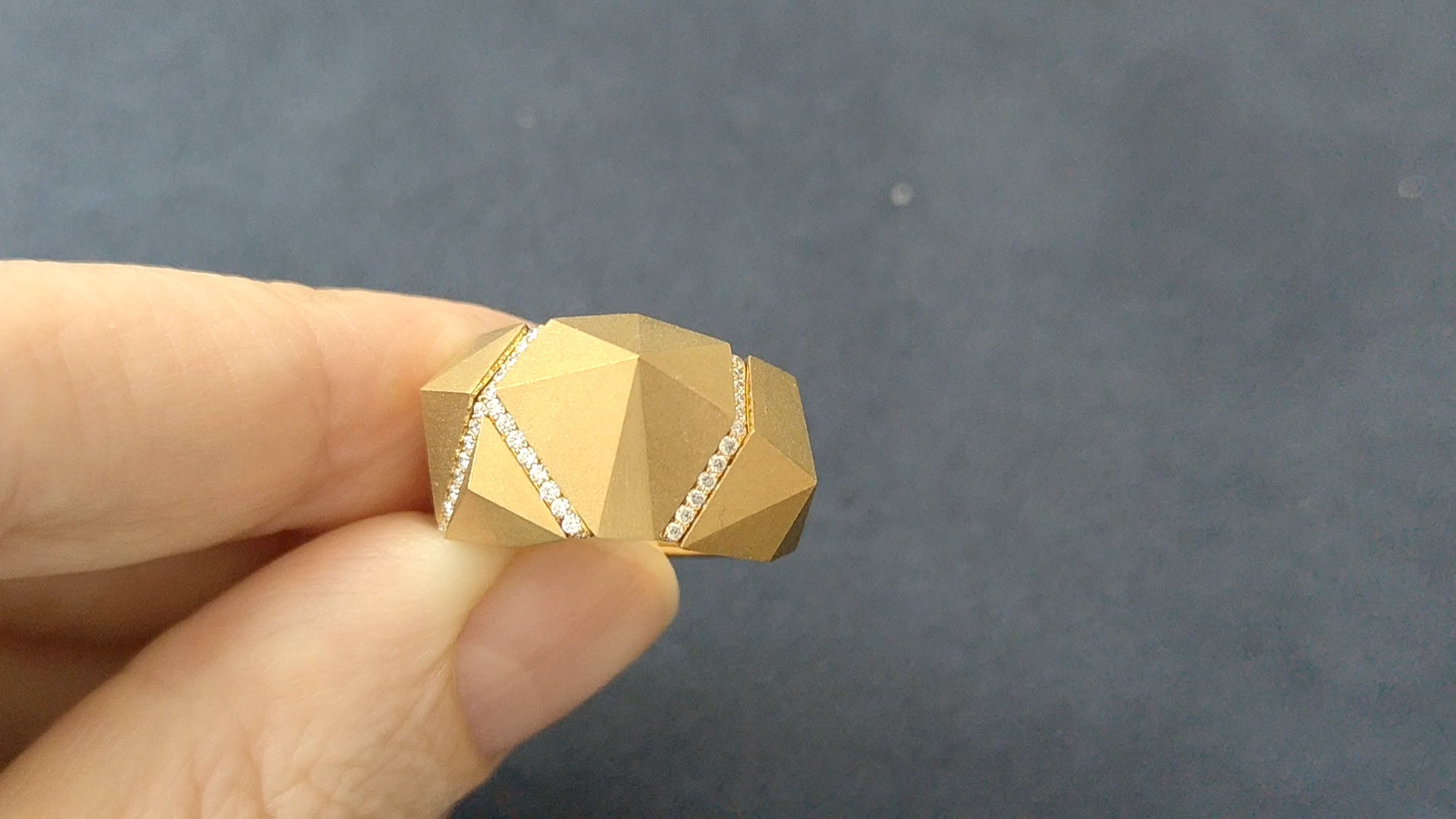 Diamonds Yellow 18 Karat Matte Gold Geometry Small Ring