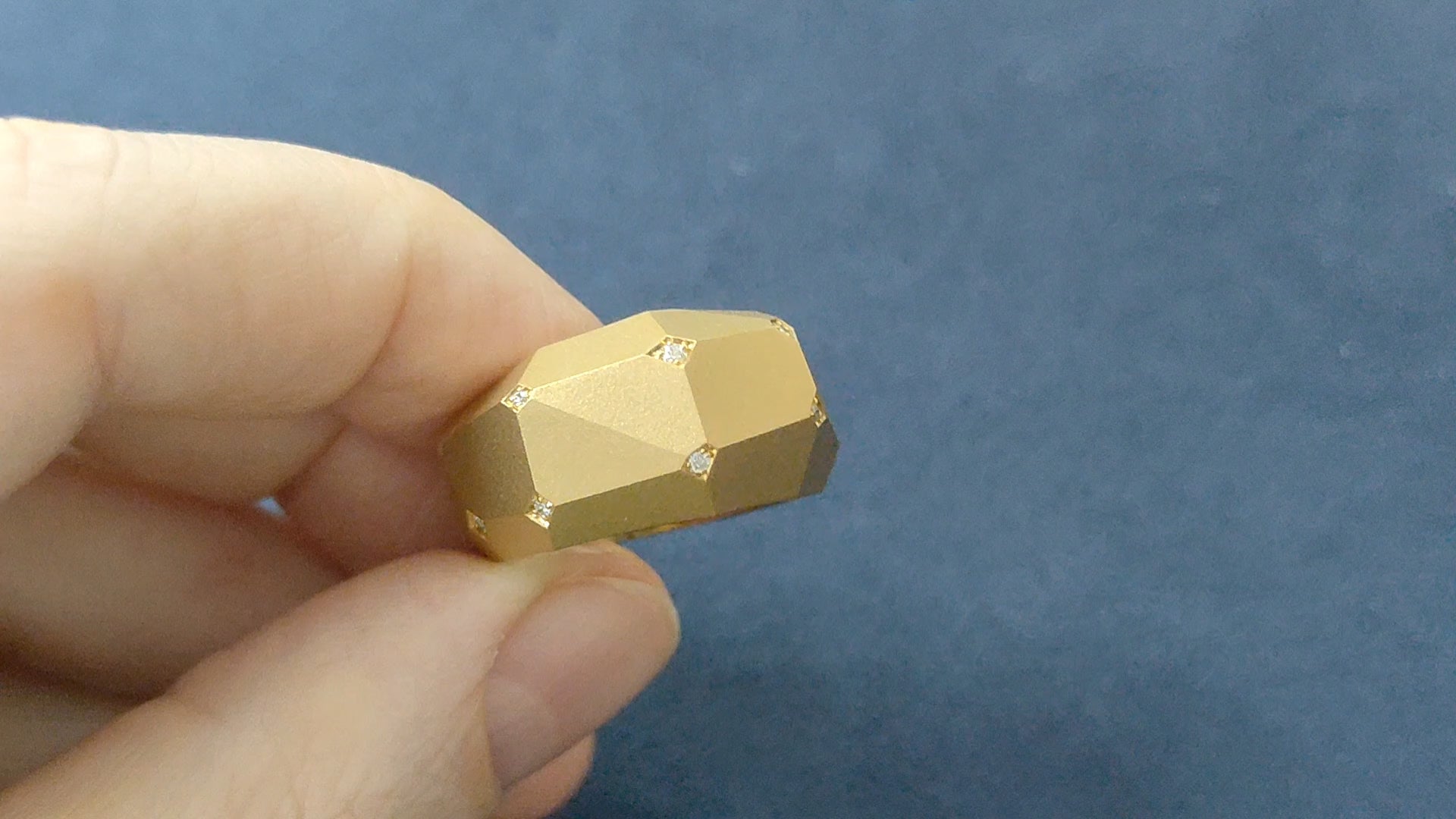 Diamonds 18 Karat Yellow Matte Gold Geometry Small Ring