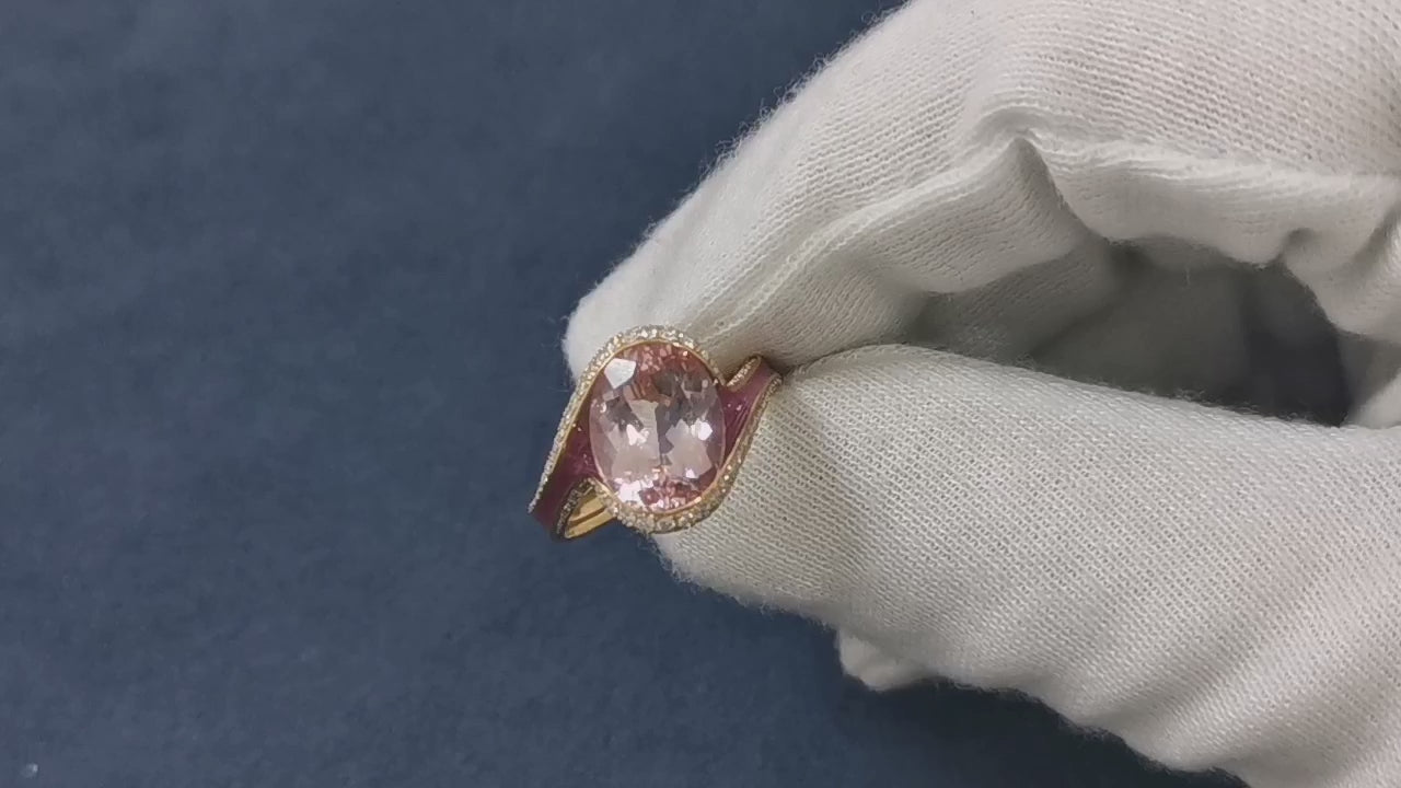 18K Yellow Gold, Enamel, Morganite 3,83ct , Diamonds Ring