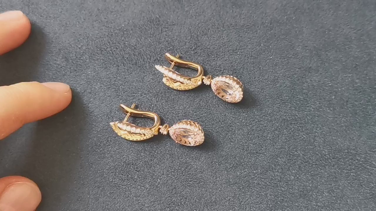 Morganite, Diamonds 18 Karat Rose Gold Earrings