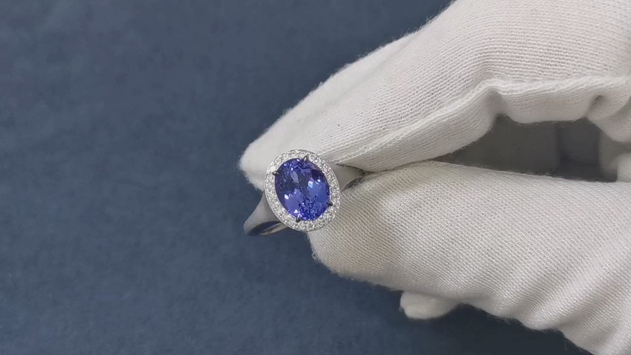 Tanzanite, Diamonds, Enamel 18K White Gold Ring, R 0143-02