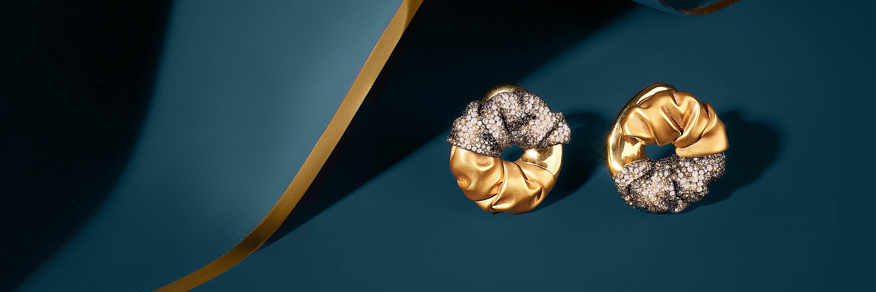White and Champagne Diamonds 18K Yellow Gold Earrings, E 0132-3