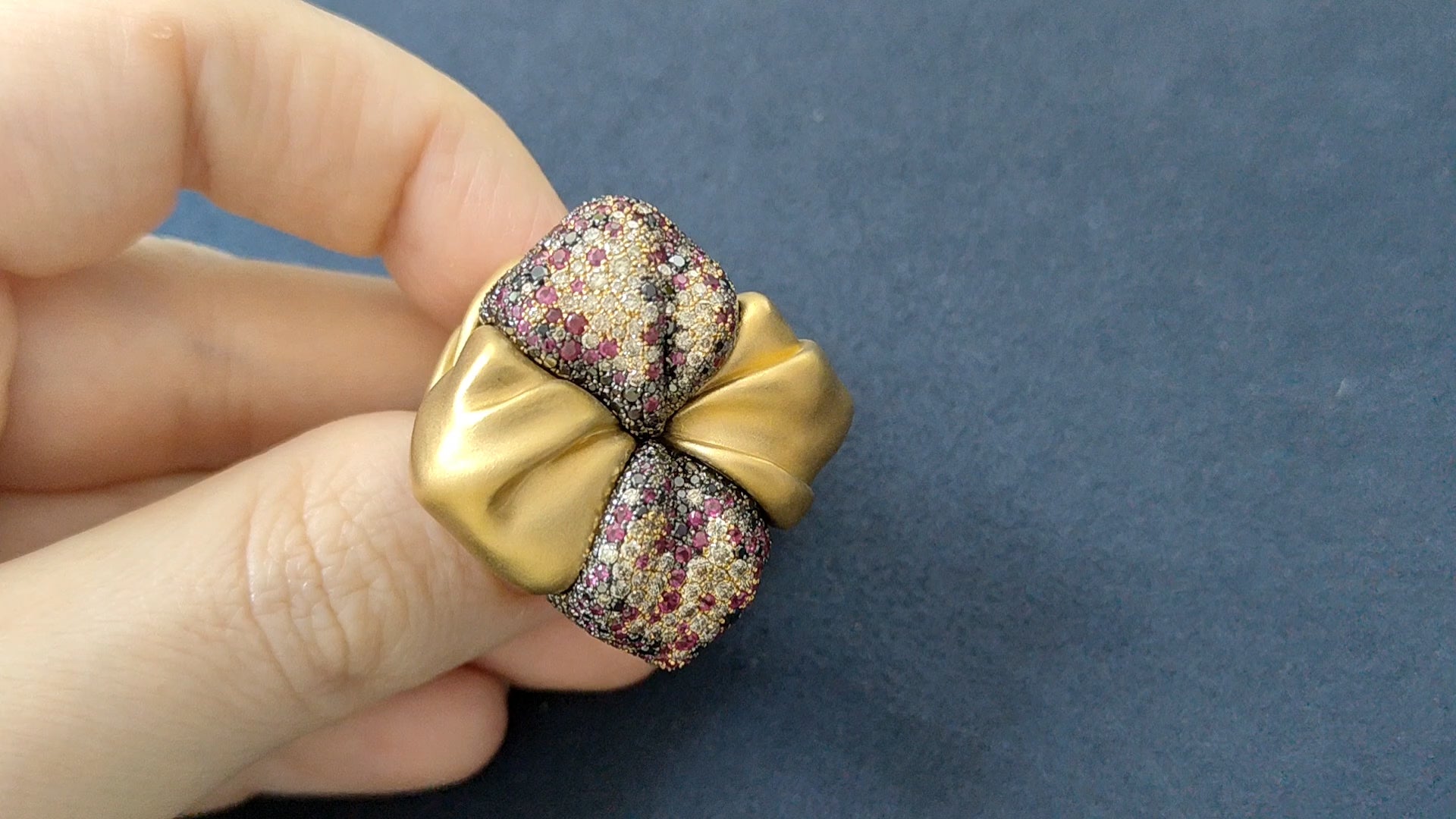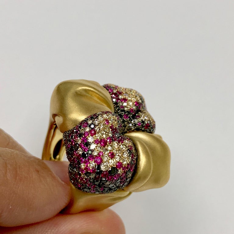 Ruby, Black and Champagne Diamonds 18 Karat Yellow Gold Ring