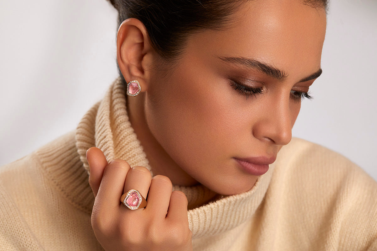 Each piece of Spectrum Collection is designed with precision to bring out the beauty of the colored gems in their natural form. The baroque shape of the gems adds a unique character to the jewelry pieces, which makes them stand out.