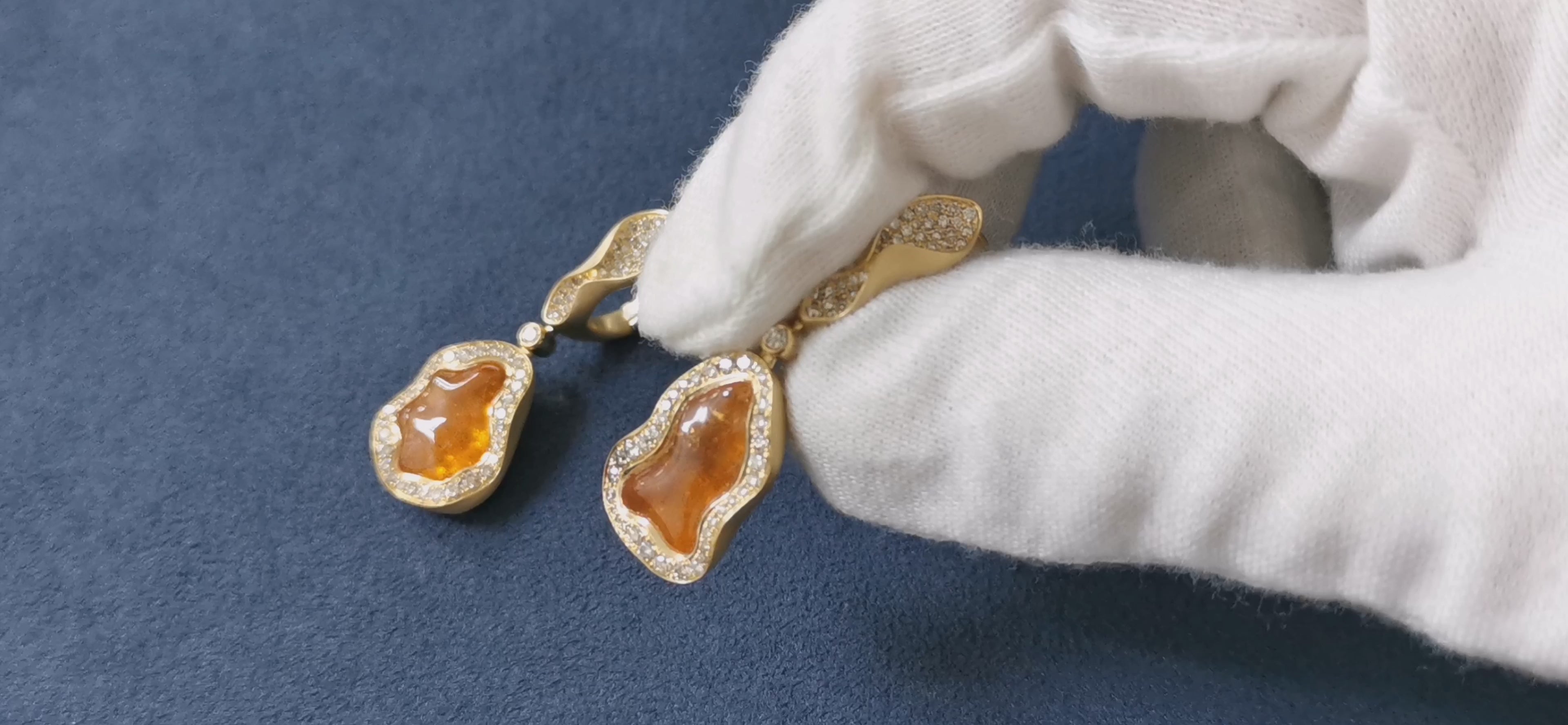Spessartine Garnet, Champagne Diamonds 18K Yellow Gold Earrings, E 0030-83/1 Sale price$18,370.00