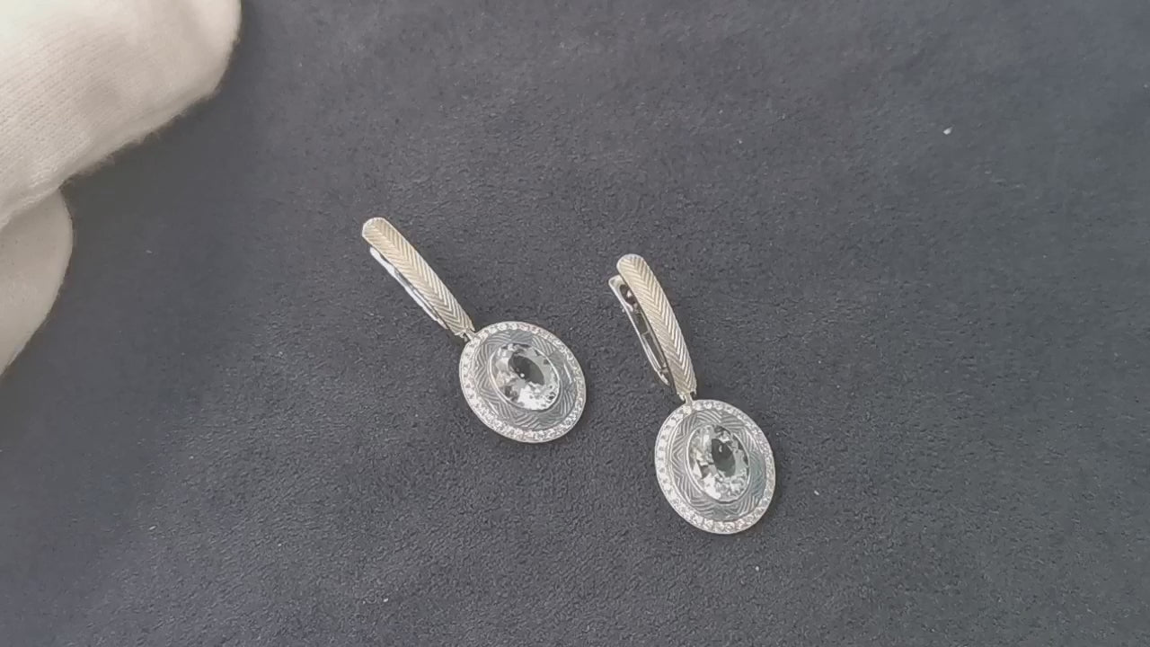 As the first to achieve it, Mousson Atelier mastered the challenging task of creating an authentic guilloche texture on intricate curved surfaces. The result is a unique, luxurious complement to the 18 karat white gold, aquamarine, diamonds, and enamel featured in these earrings.