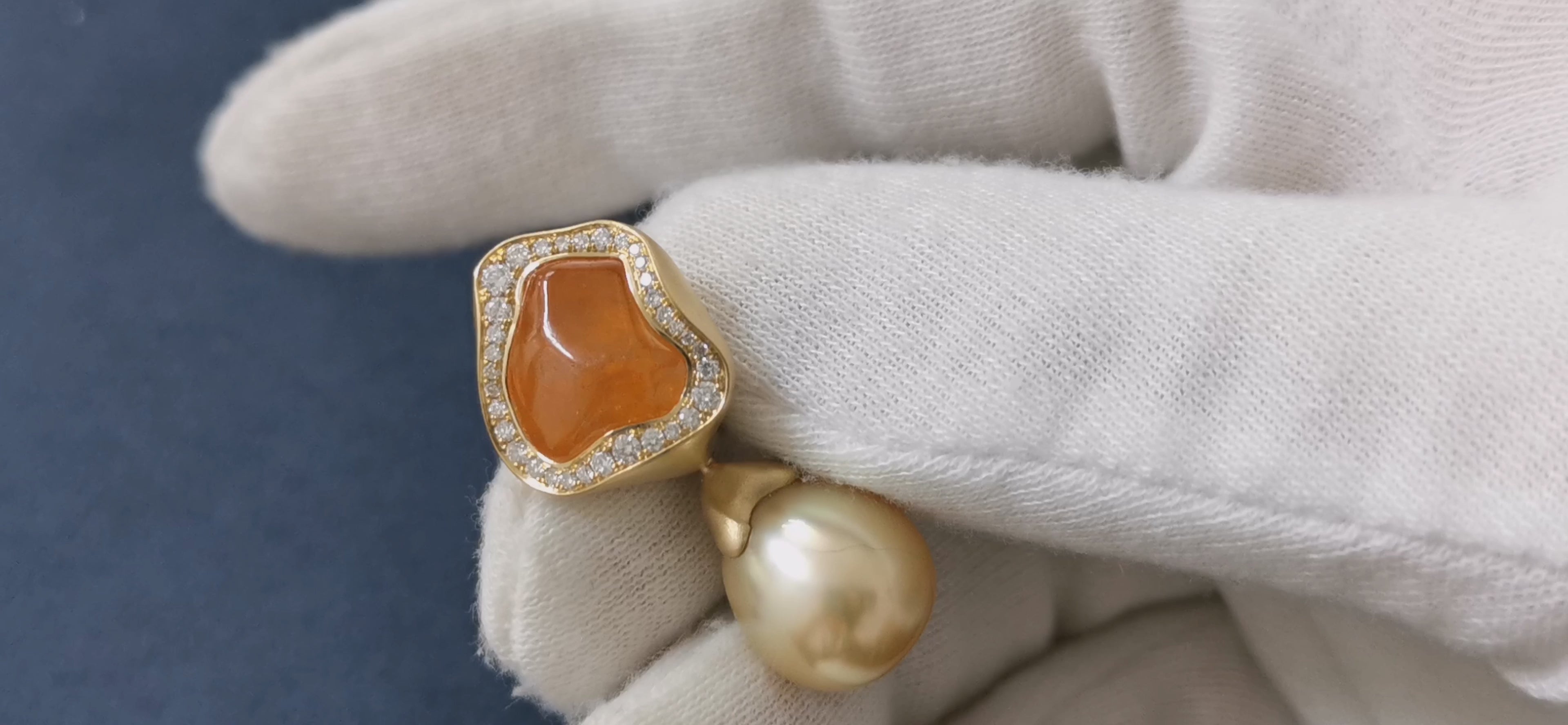 Spessartine Garnet, Golden South Sea Pearl, Diamonds 18K Yellow Gold Earrings, E 0030-84/1 Sale price$22,805.00