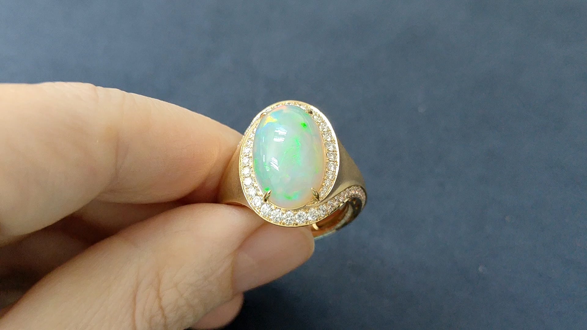 18K Yellow Gold, Opal, Diamonds, Enamel Ring
